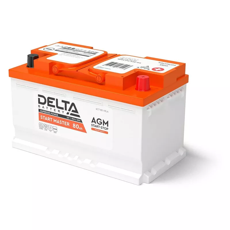 Аккумуляторы DELTA START MASTER изготавливаются по технологии AGM (Absorbent Glass Mat — электролит, абсорбированный в стекловолоконном сепараторе) и разработаны специально для автомобилей с повышенными требованиями к энергопотреблению. Высокотехнологичный производственный процесс и особое внимание к качеству материалов позволили разработать аккумулятор с увеличенным сроком службы и высокой устойчивостью к глубокому разряду. Аккумулятор адаптирован для применения в автомобилях с системой START-STOP.