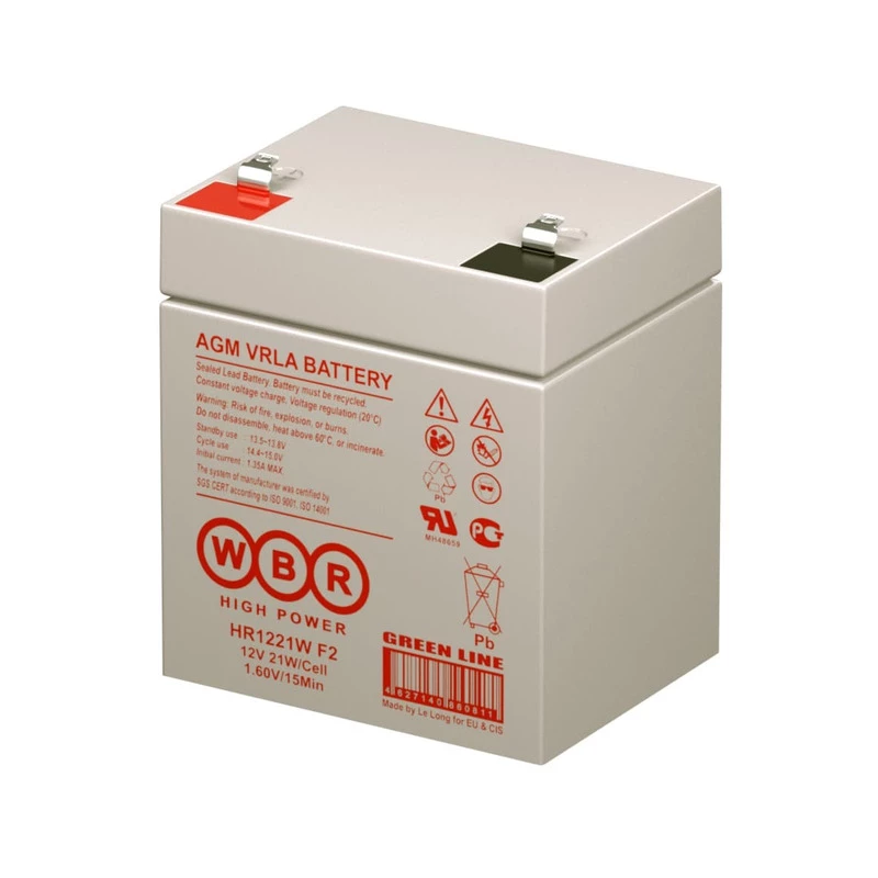 Аккумуляторные батареи WBR серии HR - батареи большой мощности со сроком службы в буферном режиме до 7 лет при температуре 25 °С или до 260 циклов до 100% разряда при работе в циклическом режиме. Их используют в качестве резервного питания промышленного оборудования, источниках бесперебойного питания (UPS), системах охранной и пожарной сигнализации, портативном измерительном оборудовании, электроприборах и другом оборудовании.