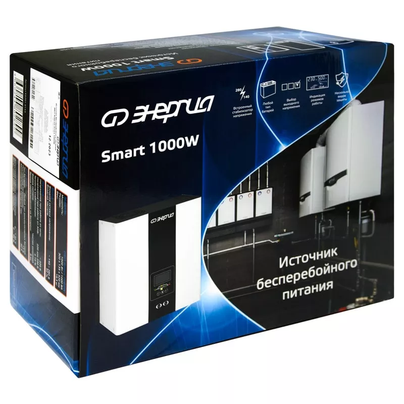 ИБП Энергия Smart 1000W представляет собой высококачественное, надежное и удобное в использовании решение для обеспечения бесперебойного питания вашего оборудования. Этот ИБП идеально подходит для дома и офиса, обеспечивая защиту от кратковременных перебоев в электроснабжении и стабилизацию сетевого напряжения.