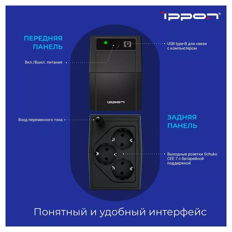Характеристики ИБП Ippon Back Basic Euro 1050S