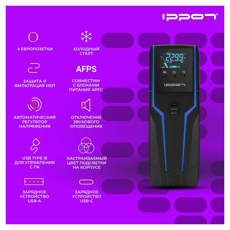 ИБП обеспечит надежную защиту оборудования и аксессуаров от внезапных отключений электроэнергии и нестабильности сети. Линейно-интерактивная технология с чистой синусоидой гарантирует стабильное и высококачественное питание, а встроенные функции защиты от перегрузки, перепадов напряжения предотвращают повреждение вашего оборудования и возможные сбои.