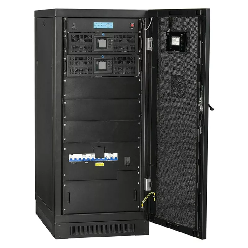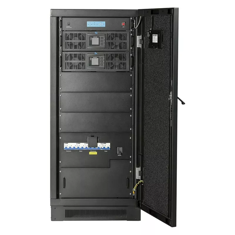 Онлайн ИБП СИП380А30МД14.10-31 двойного преобразования, с трехфазным входом и однофазным выходом, полной мощностью 30 кВА. Предустановлено пять силовых модулей мощностью 6 кВА. Выходной коэффициент мощности до 1,0. Установка до 5 силовых или батарейных модулей высотой 3U. Параллельная работа до четырех ИБП. Совместимость с генераторными установками и высокая перегрузочная способность.