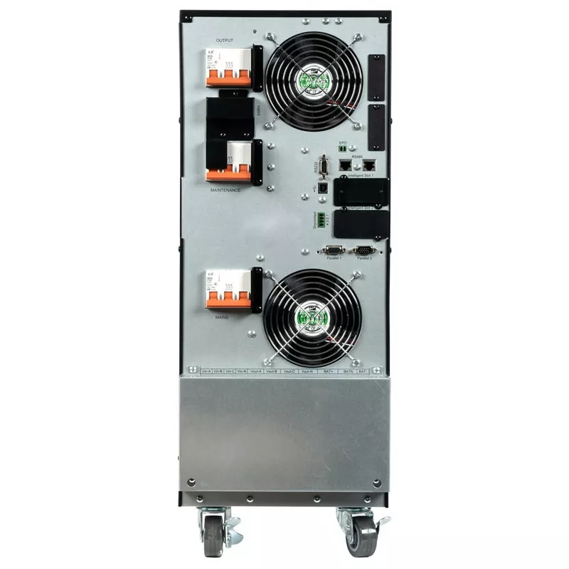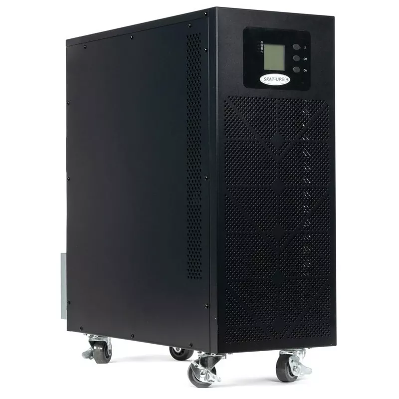SKAT-UPS 15-3/3 представляет собой современный экономичный трехфазный источник бесперебойного питания с системой двойного преобразования напряжения, цифровым управлением, функциями защиты и контроля. ИБП обеспечивает безопасную и надежную защиту оборудования от некачественной электросети, питая подключенные к его выходу устройства стабилизированным трехфазным напряжением. При отсутствии напряжения сетевого электропитания SKAT-UPS 15-3/3 использует электроэнергию, запасенную в аккумуляторных батареях.
