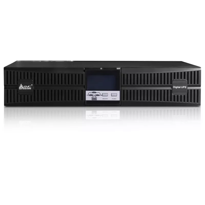 Онлайн ИБП SVC RT-3KL-LCD используется для защиты питания файловых серверов и АТС, а также любого другого оборудования, предъявляющего повышенные требования к качеству сетевого электропитания. Принцип работы состоит в двойном преобразовании (double conversion) тока. Сначала входное переменное напряжение преобразуется в постоянное, затем обратно в переменное напряжение с помощью обратного преобразователя (инвертора). При потере питания в городской сети время переключения в автономный режим равно нулю.