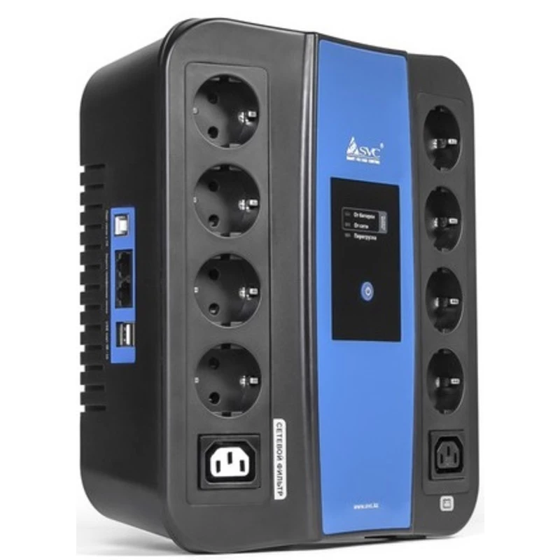 ИБП (UPS) SVC U-1000 - устройство, позволяющее подключённому оборудованию некоторое время работать от встроенных аккумуляторов, при пропадании электрического тока или при выходе его параметров за допустимые нормы.